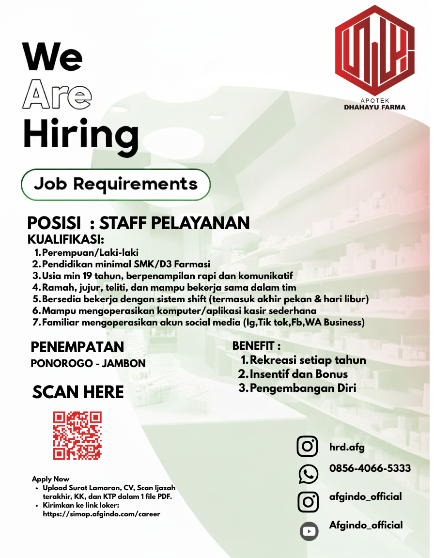 - Mendukung kelancaran operasional apotek sesuai arahan atasan